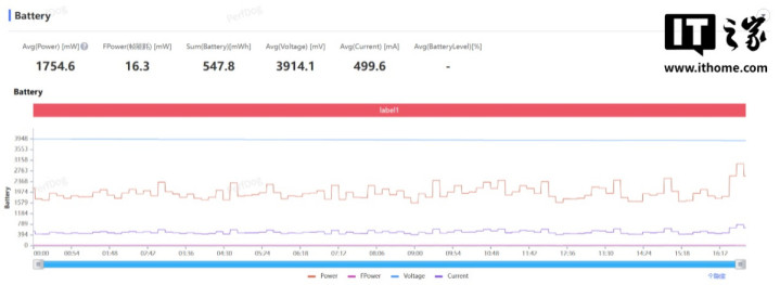 游戏平均功耗表现比较亮眼,只有4.6W,放在一众旗舰机里也是功耗最低的一档。