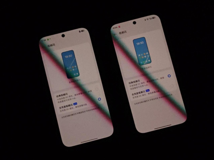 老加油都知道,一加的「明眸护眼」会提供两种调光方式,分别是「经典低频闪」和「明眸低频闪」,前者在中高亮度下采用类DC调光,低亮度下则是高频PWM调光;后者这次名称改为了「全亮度低频闪」,依旧是全亮度类DC调光。两种护眼方案,都能实现1nit亮度下显示内容清晰,画面纯净(无抹布屏观感),高亮度下不刺眼,显示效果依旧柔和自然。如果你是频闪敏感用户,更建议开启「全亮度低频闪」模式。