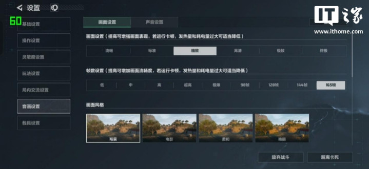 然后是一加15首发适配165Hz超高刷新率的《三角洲行动》,打开游戏音画设置就能看到并选择165帧。